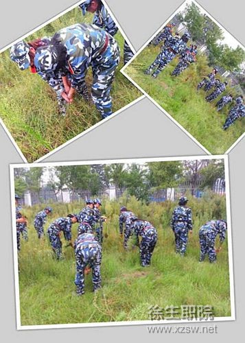 活动开始前,教官进行了简短动员,班干部进行了分工,明确了任务,随即开始了清理工作。虽然个别同学早上抽血体检时造成的不适还没有完全消失,虽然个别同学因军训脚上已经磨出了血泡,但是全体同学都热情高涨,短短半个小时,原来的荒草已经被大家用双手清理得干干净净,焕然一新。当大家看到自己的劳动成果时,脸上纷纷露出了满意的笑容。