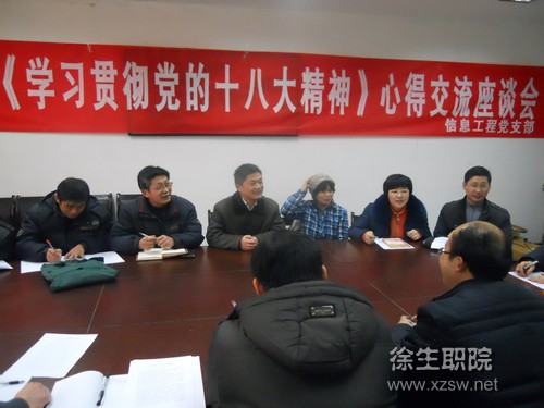 1月16日下午,信息工程党支部组织本支部所有党员同志和信息工程系教工积极分子举行了“学习贯彻党的十八大精神”心得交流座谈会。信息工程党支部书记刘明生副校长参加并主持了座谈交流会。