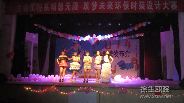 为增强学生的环保意识,展现其动手及艺术创新能力,生物工程系于5月21日晚在院大礼堂隆重举行环保时装设计大赛,系副主任卞波、系团总支书记曹慧以及班主任代表出席并担任了本次活动的评委。经过激烈的角逐,生物制药专科13-2班获得了一等奖。
