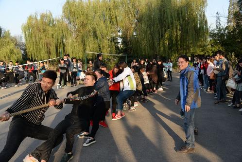 为了丰富同学们的课余文化生活,增进学生之间的交流,培养学生的团队协作能力,11月3日,信息工程系在四号楼排球场举办了一场别开生面的拔河比赛,全体同学纷纷以极大的热情参与到这次活动中。