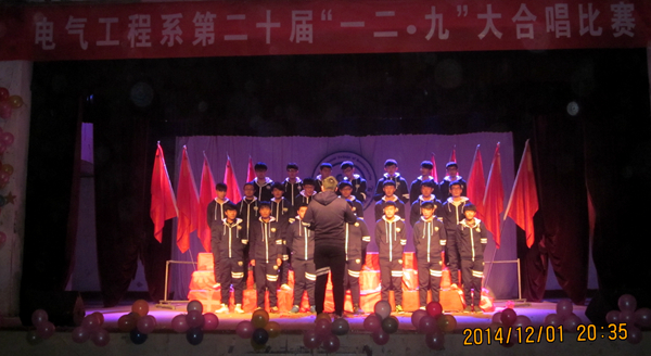 为纪念 “一二·九”爱国运动,传承和弘扬民族精神,增强爱国情操,激发学生的责任感、使命感, 电气工程系于12月1日,组织“一二•九”革命歌曲大竞唱活动。参加比赛的共计14个班级,每班竟唱两首歌曲,全体班主任担当本次评委,各班级认真准备,积极参加竟唱,他们用铿锵有力及洪亮的声音,唱出了热爱祖国的壮志豪情。
