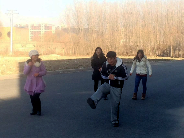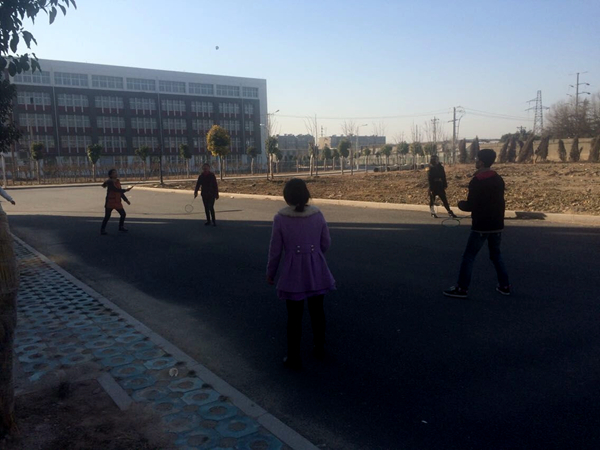 9点的天气,依然十分寒冷,但因为各种原因没有回家的同学们早已来到了场地。新的一年在运动中开始,大家分为两组,进行丢沙包和羽毛球比赛,尽管天气寒冷,但大家热情不减。看那灵活的身姿、运动的背影,让同学们感觉分外温暖。不时传来的尖叫声、欢呼声,让这个元旦显得格外热闹,大家在笑声和汗水中,迎接充满希望和挑战的2015年。