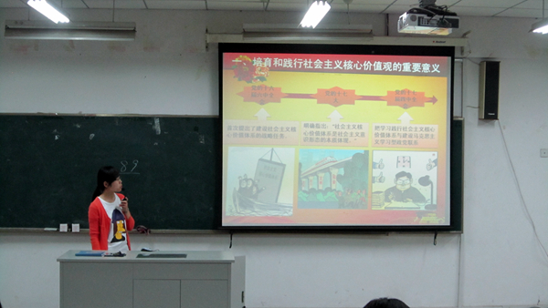 讲座中,曹老师从培育践行社会主义核心价值观的重大意义、深刻领会“三个倡导”的科学内涵以及如何做社会主义核心价值观的积极践行者三个方面进行了讲解。针对如何让社会主义核心价值观在大学生活中熠熠闪光这一问题,曹老师与现场学生进行了互动交流。最后她提出了具体要求,希望大家能够学会“校园追梦”,掌握大学生学习成才的“黄金定律”,做一个有梦想、有影响力的人。