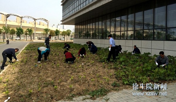 4月15日下午,党政办公室及工会全体人员响应学院号召,积极开展除草美化环境义务劳动。