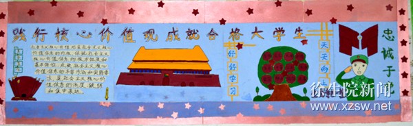 本次活动中,学生们积极参与,精心设计,认真领悟“富强、民主、文明、和谐,自由、平等、公正、法治,爱国、敬业、诚信、友善”的24字内涵,写下了“以实际行动践行社会主义核心价值观”的誓言,彰显了气质,表达了决心,展现了风貌。评委老师从板报的内容安排、插图美工、排版设计等方面对每幅板报进行了综合评分,最终评选出14个主题板报获奖班级。