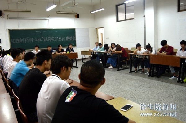 为深入交流思想,总结经验教训,分享实习心得,6月6日下午,生物工程系生物制药14-1、2班分别在213、204会议室召开“跟岗实习”总结座谈会,生物工程系主任史先振、副主任卞波、宋凯,实习带队老师、班主任和班级全体同学参加了会议。