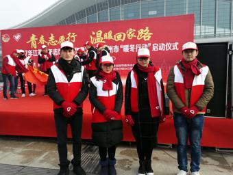 江苏省志愿服务春运“暖冬行动”由团省委联合省文明办、省春运办等多家单位共同开展。1月13日,以“青春志愿行温暖回家路”为主题的2017年江苏青年志愿者服务春运“暖冬行动”在徐州东站站前广场启动。团中央志工部副部长黄英锋为上海铁路局徐州东站“春运暖冬号”高铁列车授牌,全体春运志愿者宣誓,做出庄严的承诺。