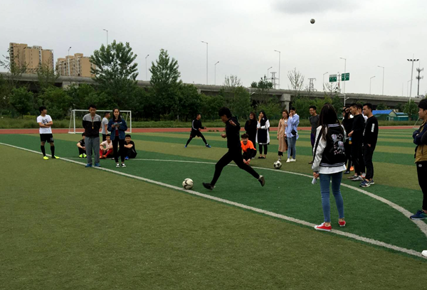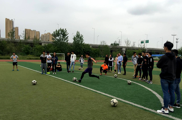 比赛分定点射门和颠球两个小项进行。首先进行的是定点射门的比赛,刚开始动物工程系的队员们就连中5分,将比赛推向高潮,其他各代表队也奋起直追,比分交替上升。接下来颠球比赛中队员们更是沉着冷静,每分必争,场边队友和啦啦队员们为场上队员加油喝彩,场面精彩激烈。