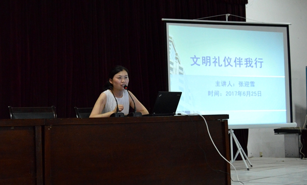 为了让学生充分认识文明礼仪的重要性,树立良好的个人形象,6月25日晚,生物工程系辅导员张迎雪老师在综合楼六楼报告厅开展了“文明礼仪伴我行”专题辅导报告,系14级所有学生参加了此次活动。
