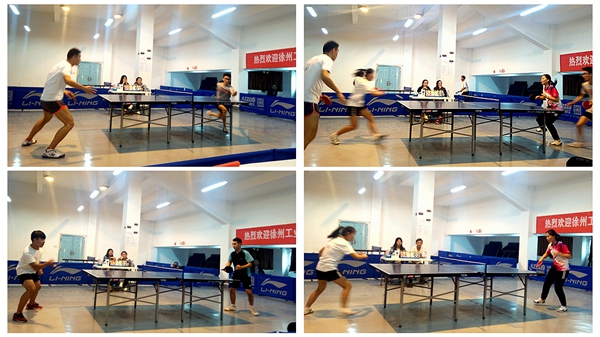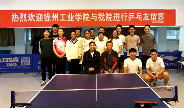 为了加强我校与地方的沟通和联系,促进我校乒乓球活动的开展,10月14日下午,我校与徐州工业学院在我校体育部大乒乓球室进行了一场乒乓球友谊赛。