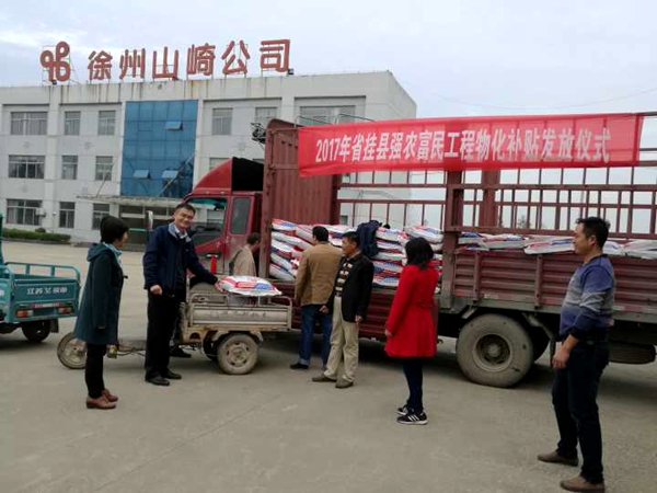 为加快农业科技成果转化落地,促进农业增效、农民增收,有力有序推进富民工程的实施,按照“省挂县强农富民工程”的总体要求和部署,10月18日,我校与丰县农委在徐州山崎公司(范楼镇)举行2017年省挂县强农富民工程物化补贴发放仪式,将第一批生产物资发放到基地每一个示范户手中。
