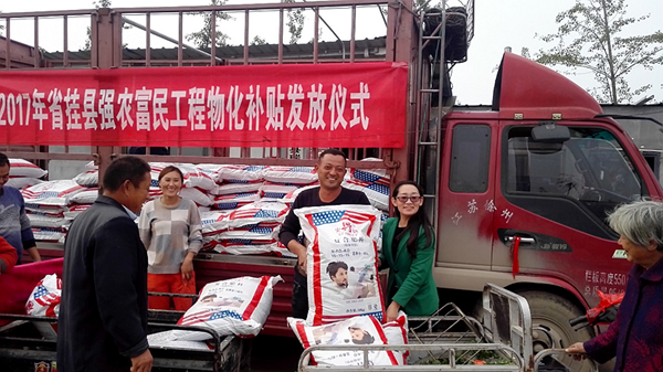 10月19日,我院挂县强农富民工程项目专家组赴丰县瑞农果蔬种植家庭农场基地,将物化补贴的150袋史丹利三元复合肥送到示范户手里,赶在越冬菠菜茬口使用。