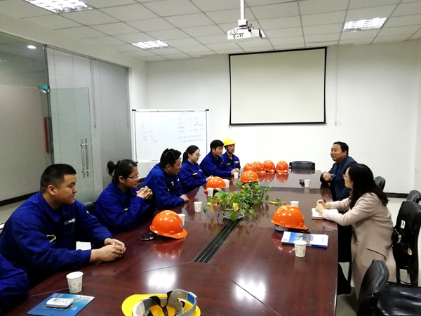 在与我校毕业生座谈中,矿机分厂的李厂长和田书记介绍了我校毕业生的生活、工作、成长情况,并给予高度评价。王开德主任对同学们在工作中取得的成绩表示祝贺。并勉励毕业生同学,作为世界顶级品牌挖掘机制造团队的一员,要倍感骄傲与自豪,要以“珠峰登顶”的勇气和坚韧为“中国智造”贡献青春与力量。