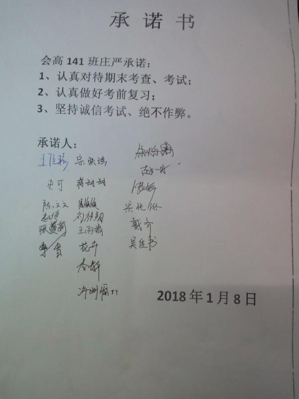 为促进广大学生端正学习态度,增强大学生诚信应考意识,近日,财经信息系多措并举,促进学生养成“诚信考试、从我做起”的优良考风学风。 系领导高度重视,召开了班主任专题工作会。班主任带领全系学生深入学习《学生违纪处分规定》,督促同学们在熟悉校纪校规并落实于期末复习与生活中。 各班级深入开展以诚信考试为主题的班会,强化诚信意识,鼓励同学们树立信心,以良好的心态迎接考试。每位学生在阅读考风建设及诚信考试承诺书的相关规定后郑重在承诺书上签名,树立了正确价值观和考试观,推进了公平公正的考风考纪建设。 (供稿:财经信息系) |