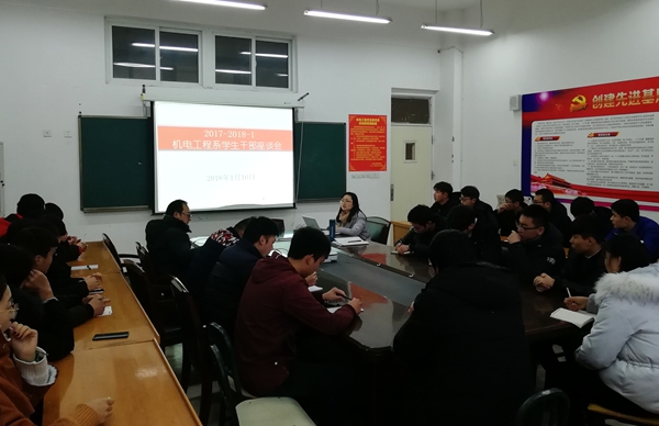 1月16日,机电工程系召开全体学生干部座谈会。系学管主任王珂,辅导员常馨、杨海亮老师出席会议,学生会主要干部和各班班长、团支书参加了会议。