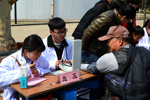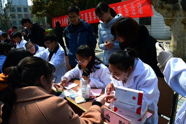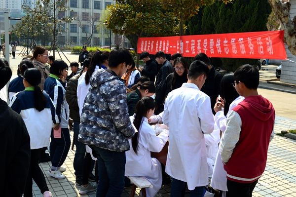 健康关怀,免费体检:生物工程系“思源”志愿者服务队开展学雷锋活动