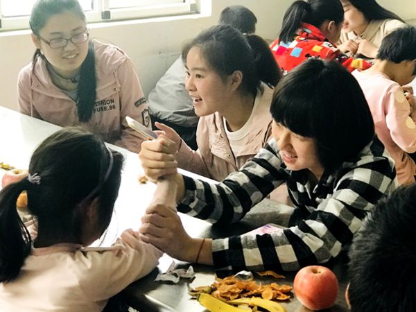 在活动中,志愿者们给特教中心的儿童准备了种类丰富的水果、零食和文具等,并代表生物工程系的全体师生给孩子们送上了最诚挚的问候和祝福。在详细了解“盲部”学生的学习生活情况后,志愿者们通过一系列团体游戏让孩子们学会团结协作和互相帮助。最后,志愿者和特教中心的儿童共同演唱了一曲《你是我的眼》,将活动推向了高潮。