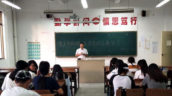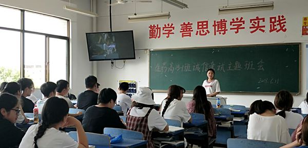 为进一步加强学风建设,引导学生树立良好的考风考纪,临近期末,生物工程系组织各班级开展诚信考试教育主题班会活动。 主题班会上,班主任给同学们详细讲解了期末考试的考场安排和考场秩序,以实际案例为同学们敲响了警钟,提醒大家端正学习态度,合理安排复习时间,争取在各科考试中取得优异的成绩。同学们也纷纷表态:作为新时期的大学生,一定会树立诚信的价值观,共同营造优良考风,交出一份诚信答卷。最后,各班同学在《诚信考试承诺书》上郑重地签上了自己的姓名。 诚信考试教育主题班会的召开,教育同学们以正确的态度对待考试,以充分的复习准备考试,在轻松和谐的气氛中增强了同学们的诚信意识。 (供稿:生物工程系) |