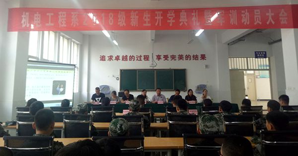 9月10日,在机电工程系汽车实训楼智慧教室举行新生开学典礼及军训动员会。王开德主任、史先焘、王珂副主任会议,系教学秘书、辅导员、新生班主任老师及2018级全体新生参加了会议。 会上,王开德主任向全体教师致以节日的祝贺,对2018级新生提出了四点要求:一要有理想;二要刻苦学习;三要思考创新;四要学会适应。最后王主任为即将开启的新生军训进行了动员,他激励同学们:“军训是入校第一次活动,一定要出手得卢,赢得一个开门红”。 新生代表唐剑同学作了表态发言。王珂副主任对军训及新生入学教育具体工作做了精心部署。 (供稿:机电工程系) |