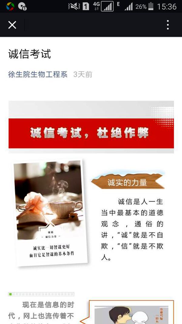 诚信是做人的基本品质,是个人成就事业的根基。诚信考试教育主题班会的开展,提高了同学们的诚信意识,强化了考试纪律,营造出“诚信考试光荣,违纪作弊可耻”的良好氛围。