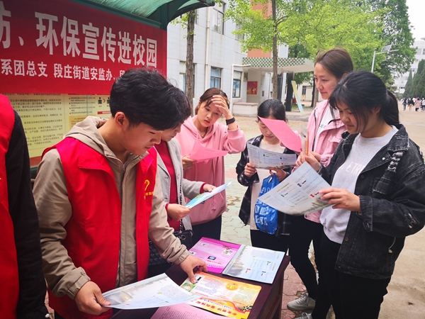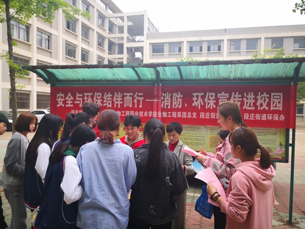 为进一步推进防灾救灾减灾宣传教育,增强师生防灾减灾意识,在第十一个全国防灾减灾日来临之际,生物工程系团总支与段庄街道团工委联合开展以“安全与环保结伴而行”为主题的防灾减灾救灾宣传教育活动。