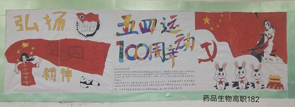 为进一步加强大学生思想引领和价值引领,弘扬“爱国、进步、民主、科学”的“五四”精神,践行社会主义核心价值观,生物工程系于5月8日组织开展“纪念五四运动100周年”主题板报评比活动。