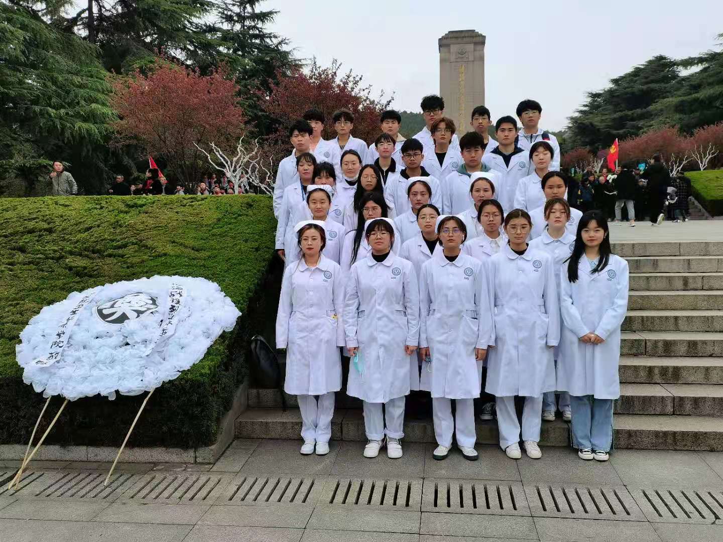 清明节来临之际,为缅怀革命英烈,弘扬爱国主义精神,加强爱国主义教育,4月1日上午,卫生健康学院团总支来到淮海战役烈士纪念塔,开展清明祭扫主题教育活动。此次活动由团总支书记孙萌老师、何冰聪老师带队,卫生健康学院团总支委员、学生会干部和团员代表参与了本次活动。