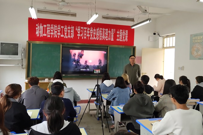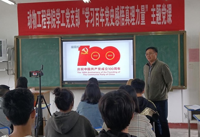 4月13日下午,动物工程学院学工党支部于4号教学楼204教室举办“学百年党史,感悟真理力量”系列主题党课活动。本次党课由动物工程学院党总支书记葛启蒙担任主讲人,学院全体入党积极分子参加学习。