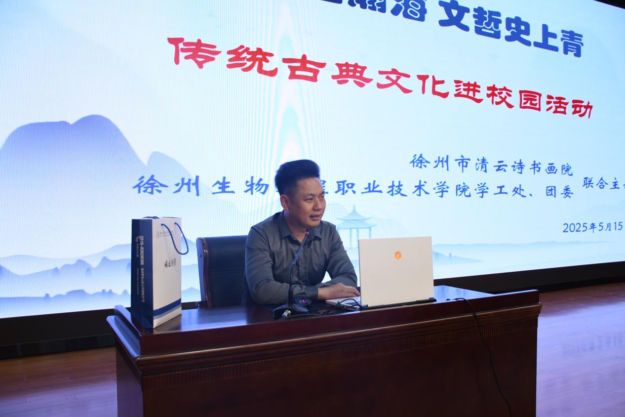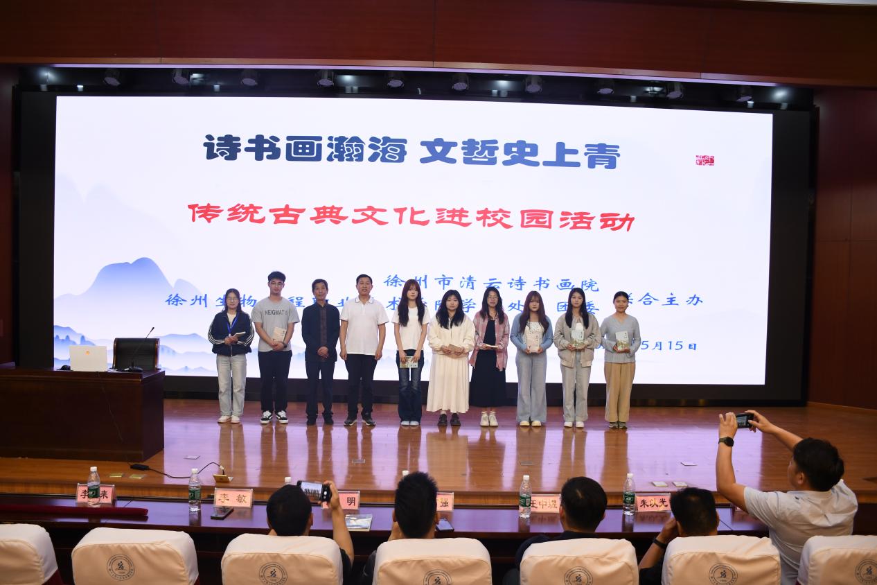 为深化青年学子对传统文化的认知,增强文化自信,5月15日,校团委、学工处联合徐州清云诗书画院在图文信息中心三楼报告厅开展“诗书画瀚海 文哲史上青”传统古典文化进校园活动。