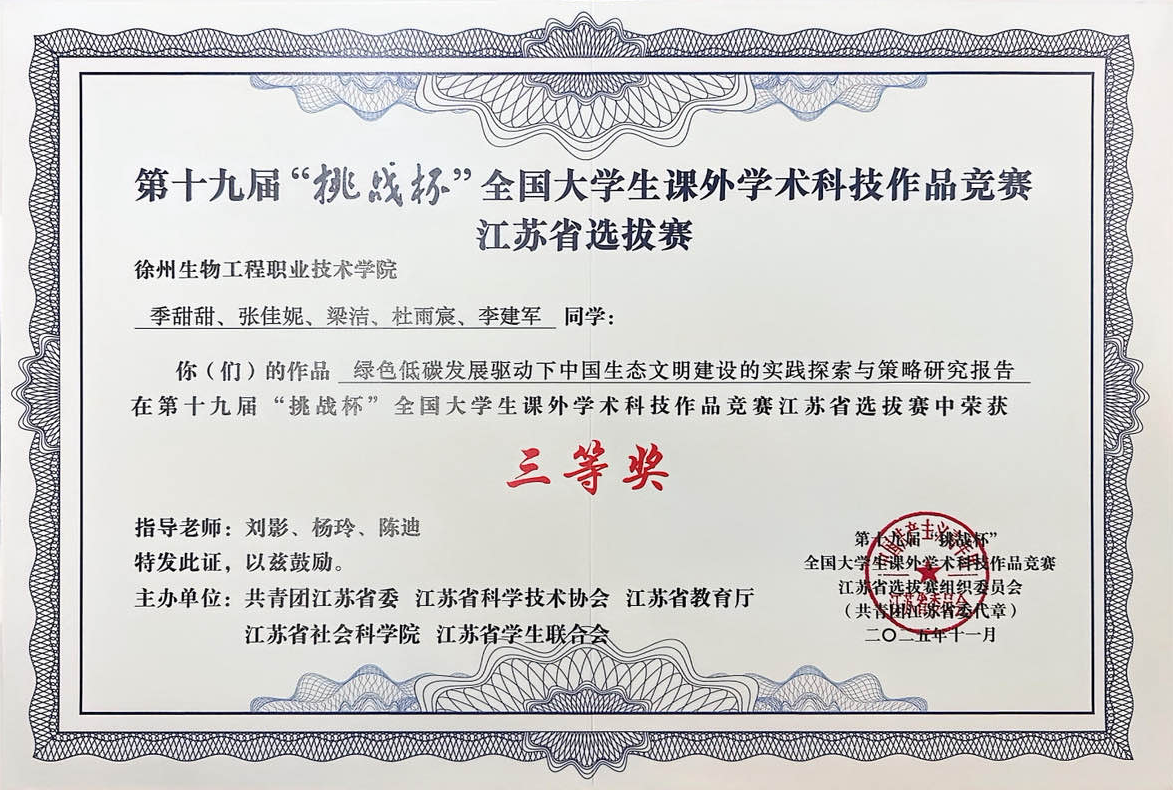 近期,由共青团江苏省委、江苏省科学技术协会、江苏省教育厅、江苏省社会科学院、江苏省学生联合会共同主办的第十九届“挑战杯”全国大学生课外学术科技作品竞赛江苏省选拔赛已圆满落下帷幕。