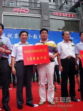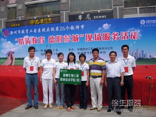 近日,为庆祝第二十六个教师节,徐州市总工会、徐州市教育工会在市彭城壹号举办“情铸教育,德润彭城”现场服务活动。副校长秦越华同志代表学院向对口帮扶学校捐赠现金三仟元。 在现场服务活动中,我院专业教师与市民进行了交流,他们的花卉栽培和动物医学咨询服务得到了市民朋友们的欢迎。
