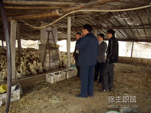 为了加速推进我院的挂县强农富民工程,帮助驻村专家更好地开展工作,10月29日,副校长秦越华带领学院挂县强农富民工作领导小组的部分同志来到丰县大沙河镇,调研、指导我院的挂县强农富民工作。在镇政府有关领导和镇畜牧中心负责同志的陪同下,秦校长一行询问了驻村专家的工作情况,查看了部分肉鸭养殖大户的鸭棚,并和养鸭专业户进行了交流,我院驻大沙河镇六座楼村畜禽专家薛忠副教授解答了鸭农提出的问题。