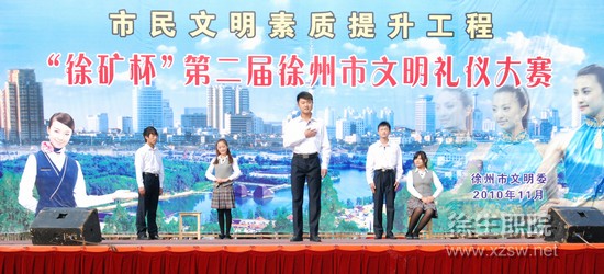11月6日下午,“徐矿杯”第二届徐州市文明礼仪大赛在徐州市古彭广场举行。本次文明礼仪大赛由徐州市文明委主办,旨在在各行各业中大力倡导文明言行,广泛普及文明礼仪知识,充分展示我市经济社会发展和城市建设中的礼仪文化、礼仪修养。我院学生代表队应邀参加,表演“古彭新韵”,展现了积极向上的精神风貌和良好的礼仪修养,受到了在场观众的热烈欢迎。