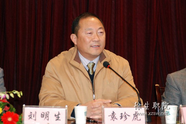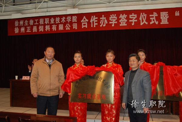 刘校长首先代表学校对袁总一行表示热烈的欢迎,双方共同为“正昌饲料(集团)公司徐州人才培训基地”、“徐州生物工程职业技术学院实习就业基地”揭牌。秦校长代表学校与公司在合作协议书上签字并向袁总裁颁发“客座教授”聘书。秦校长在随后的讲话中指出,校企合作是职业教育教学改革的方向,学校和企业的深入合作必将对我校专业建设和公司的持续发展产生深远的影响。他希望“正昌班”的同学们珍惜机会,提高自我,以一流的学习和一流的业绩回报学校的培养和公司的支持,希望正昌公司能一如既往地支持我院的发展,希望动物工程系要认真把“正昌班”的各项工作做好,以实际行动赢得公司的信任和支持,不断深化合作层次,提升合作水平。
