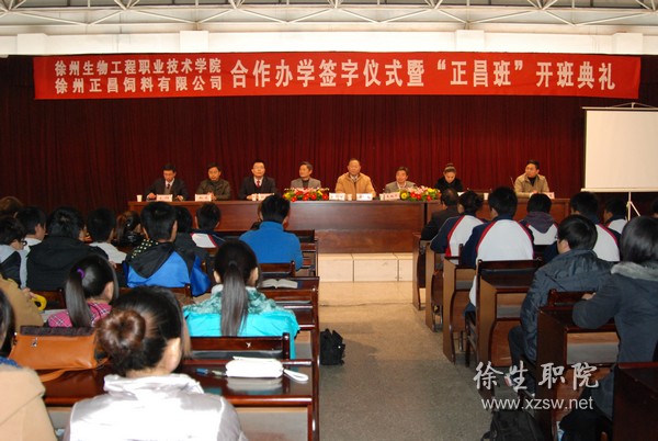 11月17日,我院与徐州正昌饲料(集团)公司合作办学签字仪式暨“正昌班”开班典礼在学术报告厅隆重举行。学校副校长秦越华、刘明生,公司总裁袁珍虎先生等领导出席了典礼。