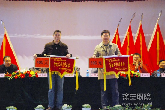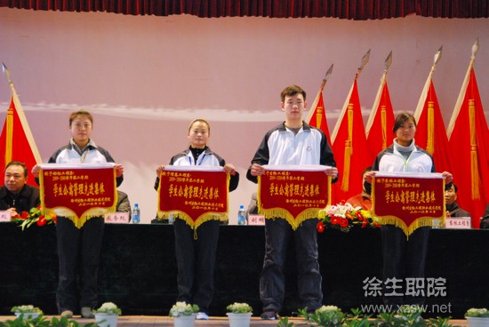会议由副校长刘明生主持,学工处处长丁永辉宣读表彰决定。大会对2009-2010学年第二学期学生工作先进集体和先进个人、公寓管理先进集体和先进个人、校园环境卫生工作先进集体和先进个人,以及2010年徐州市技能竞赛获奖学生进行了表彰,并向获奖代表颁发了奖状和证书。计算机高职07-1班林艳同学代表受表彰学生发表了获奖感言。