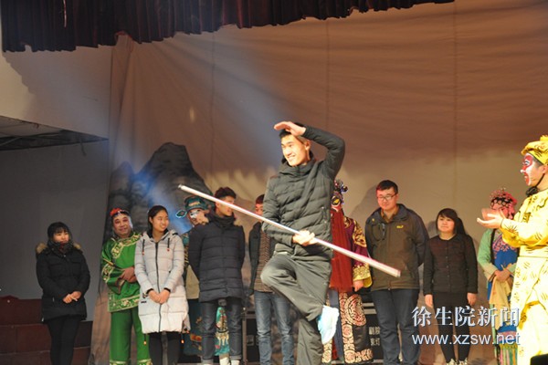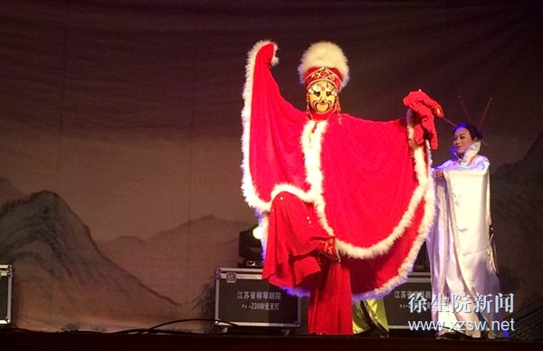 12月22日晚,2015年高雅艺术进校园——江苏省柳琴剧院专场演出在我校大礼堂精彩上演。 晚会以戏曲舞蹈《俏花旦》开场,活泼俏皮的舞蹈瞬间带动了现场气氛。国家一级演员藏玉玲老师带来的《变脸》节目,以精妙绝伦的技艺赢得了同学们的热烈掌声。在行当展示环节中,演员们首先展示了柳琴戏的主要行当,随后邀请10位同学上台学习自己感兴趣的行当,并向参演同学赠送了戏曲鉴赏书籍,让同学们零距离接触传统文化,欢乐的气氛将演出推向了高潮。最后,晚会在柳琴戏传统剧目《喝面叶》的精彩表演中圆满落幕。 作为徐州地区本土剧种之一,柳琴戏的唱腔曲调优美动听,表演朴质幽默,有着浓郁的地方特色。此次“高雅艺术进校园”活动,将高雅艺术融入校园文化生活,提升了校园文化品位,丰富了大学生的课余文化生活,为我校大学生提供了一个提升艺术素养、感受艺术魅力的平台,深受大学生的欢迎。 (供稿:团委)