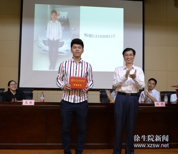 6月14日下午,学院2016届三年制大专毕业生毕业典礼在图文信息大楼报告厅举行,院长蒋留生,副院长刘明生,党政办、教务处、学工处、团委及5系等相关部门负责人出席,毕业班班主任、教师代表、2016届三年制大专毕业生参加典礼。 蒋留生院长向我院2016届三年制大专毕业生们情真意切地发表了题为《最好的时代才刚刚开始》的致辞。蒋院长首先祝贺同学们在徐生院这个重要的人生驿站顺利完成学业,再度扬帆远航,去追逐更加绚丽的人生梦想,并向3年来陪伴提携同学们成长的老师及所有人表示衷心的感谢。三年虽短,记忆难忘。他深情回顾了3年来在一大批德学双馨的良师的教导下同学们取得的成长和进步,回顾了师生共同努力见证学校办学实力迅速增强,顺利通过国家评估,由新升格院校迈入合格院校行列的历程。蒋院长寄语同学们在新的征程上,牢记“瞻远行实”的校训,不在浮躁功利上推波助澜。他勉励同学们要学会“坚守”,“坚守思想,你会远离干扰,收获深度;坚守目标,你会消除迷茫,收获长度;坚守勤奋,你会抵制慵懒,收获厚度;坚守良知,你会拒绝诱惑,收获高度!”蒋院长动情地说:“你们的精神将代表徐生院的精神,你们的高度就是徐生院的高度,你们的未来也承载着徐生院的未来。无论你在哪里,母校将永远快乐着你的快乐,幸福着你的幸福!同学们,一路珍重!” 典礼上,刘明生副院长宣读了《关于表彰付婷婷获得国家奖学金的表彰决定》《关于表彰学院2016届优秀毕业生的决定》《关于表彰2016届优秀毕业论文的决定》和《关于聘任2016届校友联络员的决定》,蒋留生院长亲自为每位毕业生颁发毕业证书,并合影留念。 毕业班班主任代表李洋、毕业生代表沈夫艳分别在典礼上发言。 我院2016届三年制大专毕业生共464人,他们中涌现了大批典型标兵,有66名同学获得国家奖学金、国家励志奖学金,68名同学升入本科院校深造,30名同学获得市级以上表彰,18名品学兼优的同学光荣加入中国共产党,153名同学被评为优秀毕业生,20篇毕业论文获优秀等第。 (供稿:办公室、学工处)