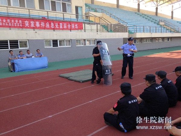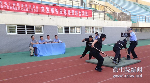 为进一步做好我校突发事件应急处置工作,深入开展“平安高校”创建工作,6月17日下午,学校安全保卫处和泉山公安分局巡防大队联合开展以“警校联手、共铸精英”为主题的突发事件应急处置演练。 活动中,派出所民警对警械装备的规范使用进行了深入讲解;在演练活动模拟情景中,一名校外不法分子手持凶器强行进入校园后,安保人员和民警迅速赶到现场,使用携带的警械装备将该男子制服;活动中还演练了群体性事件的应急处置工作。 通过本次演练,进一步提升了我校对处置突发事件紧急避险的能力,强化了派出所和学校应对突发事件的处置和协同能力。 (供稿:安保处)