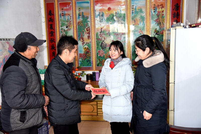 结合当前疫情形势和防控要求,资助管理中心制定了“线上走访为主,线下实地走访就近就便”的走访方案,仅针对徐州本地相关县市区进行线下走访。走访对象覆盖建档立卡家庭困难学生、低保家庭困难学生以及部分家庭经济特别困难学生。学校精心准备了春联、牛奶、坚果等慰问品,线下为6名家庭困难学生发放慰问金计3000元。通过线下和线上走访,把党和国家的温暖、学校的关怀,带给每一名学生。