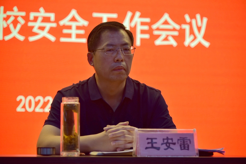 王安雷分析了下半年学校安全形势的紧迫性、严峻性,指出疫情、舆情和安全稳定是当前三大任务,党的二十大是目前最大的政治任务。对于下半年安全工作强调指出:一要统一思想,继续严抓疫情防控。二要提高政治站位,维护校园政治安全。三要坚持底线思维,提高防范风险能力。领导干部要有强烈的忧患意识、风险意识和政治担当,要提高预判风险能力和应急处突的胆识和魄力,增强工作的预见性,高度警惕可能发生的各种隐患风险,强化主体责任,狠抓责任落实,以实际行动迎接党的二十大召开。