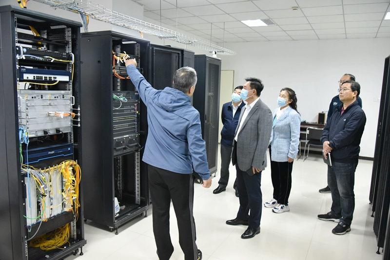 谢建林一行首先对学校数据中心机房进行了巡检,听取了机房建设情况的介绍,详细了解了机房设备尤其是安保设备的运行情况,对加强机房日常巡检、消防、环控等提出了具体的要求。随后,谢书记一行到网络中心值班室与全体工作人员进行了座谈,听取了学校数字化校园建设、网络运行与安全、重保期间的值班安排以及下一步网络建设的重点等情况的汇报,查阅了网络安全相关制度和台账资料。检查组一行还巡查了图书馆建设、管理和使用情况,并提出具体要求。