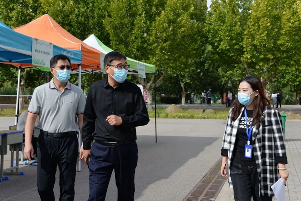【校门口:井然有序】 根据《2022年秋季学期开学及疫情防控工作要求》,学生工作处详细制定了新生报到工作方案和疫情防控工作预案,全面落实常态化疫情防控各项措施。在校门口布置学生体测通道,核查核酸检测报告、出示健康码、行程码、进行体温测量和人脸识别,有序进入校园。校领导多次到现场,察看开学报到各项工作,现场了解疫情防控保障措施落实情况和新生报到情况,并对新生报到流程中的重点环节、风险点和防控点提出了要求。