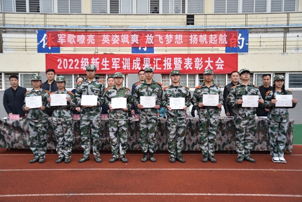 军人风采尽展秋色校园、徐生英姿描绘未来蓝图。11月19日,我校在体育场隆重举行2022级新生军训成果汇报暨表彰大会。党委委员、副校长强承魁,学生工作处处长朱明,生物装备学院、卫生健康学院、信息管理学院党总支书记、副书记参加。会议由学生工作处副处长仝金鹏主持。