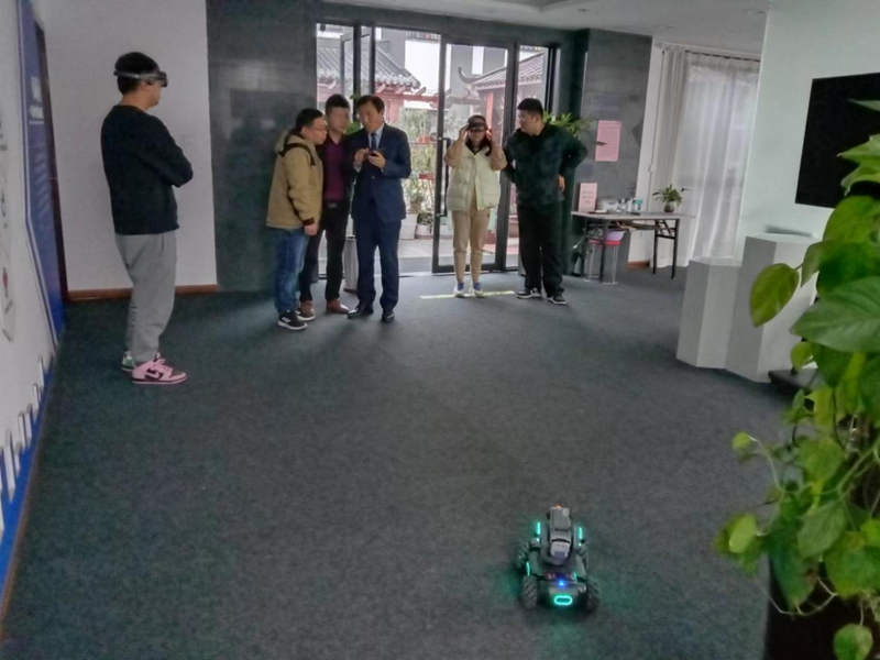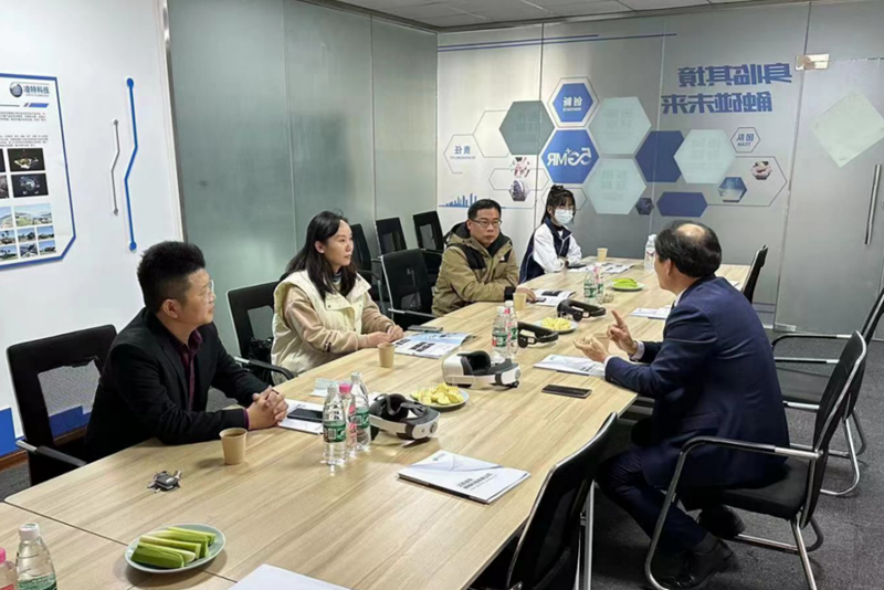 师生们认真听取了江苏凌特网络科技有限公司总经理薛奎的介绍,并进行了MR机电员工智能培训系统,VR煤矿事故案例系统、心脑血管等虚拟仿真产品的体验,随后各位教师从XR技术为专业教学和人才培养赋能、校企合作开发具有地方特色的虚拟仿真教学资源等方面积极建言献策。