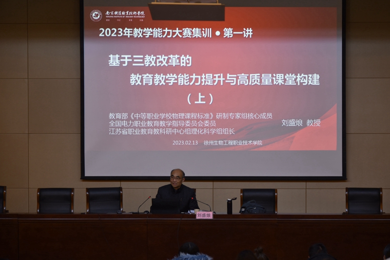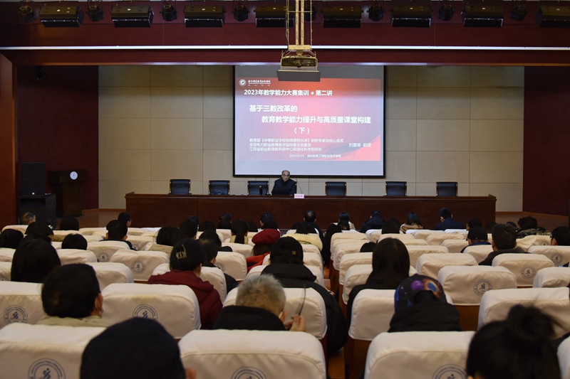 学校邀请了南京铁道职业技术学院刘盛烺教授担任讲座专家。刘教授以《基于三教改革的教育教学能力提升与高质量课堂构建》为主题,从新时代教师的新追求、教育教学能力提升、厘清几个重要理念、高质量课堂构建等四个方面,结合自己多年来指导教学能力比赛经验及感悟深入浅出地进行了讲解和分析,既有对教学能力比赛宏观的政策引领,又有微观的方法指导、成功感悟,讲座内容丰富、主题突出、思想深刻、见解独特、言语真切、经验丰富,具有很强的启发性、实用性和可操作性,对系统推进我校的教学能力比赛工作具有很强的指导意义,为我校备战省赛、国赛提供了思路,指明了方向。教师们纷纷表示受益匪浅,加深了对教学能力比赛重要性的认识,要不断更新职教理念,提升教学能力和水平,推进我校教育教学高质量发展。