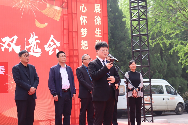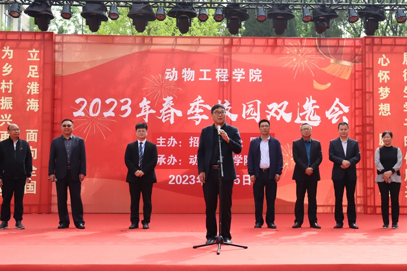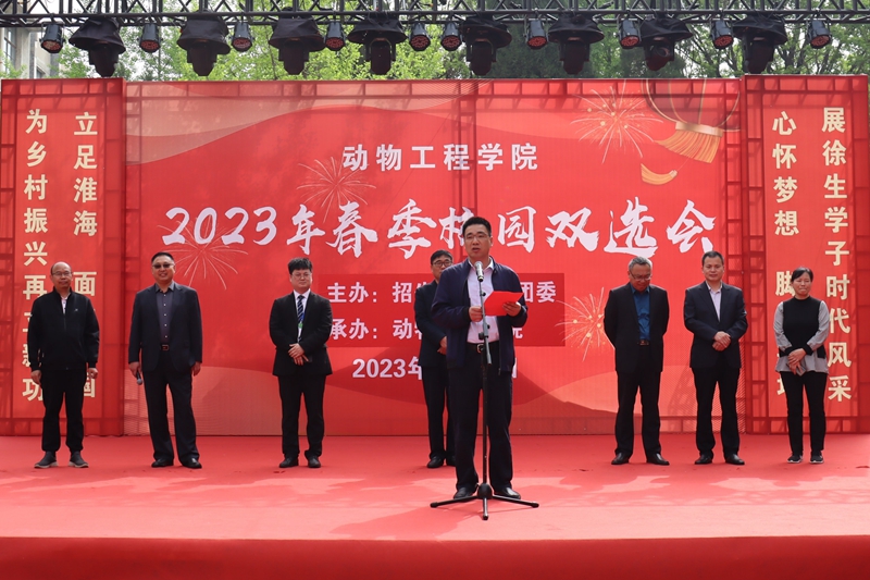 4月15日上午9时,由招生就业处和团委主办,动物工程学院承办的2023年春季校园双选会于3号教学楼前广场隆重举行。校党委副书记、校长徐锋,校党委委员、副校长强承魁,牧原集团江苏区招聘负责人樊冬辉,校招生就业处处长张韧及动物工程学院相关领导出席开幕仪式。
