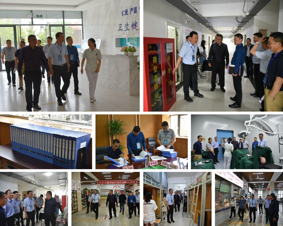 专家组一行查阅了台账资料,实地检查了卫生健康学院、学生食堂、学生公寓等安全重点场所。