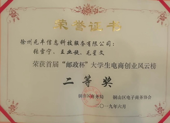 6月12日上午,铜山区演播中心内,风云际会,星光荣耀,铜山区电商风云榜颁奖大会在此举行。我校张雪宁、王业旋、毛星文三位同学代表学校参加比赛,在刘媛媛老师和元丰公司吴长青总经理的共同指导下,通过路演、网络投票和专家评审等三个环节,在百余个团队和个人中脱颖而出,获得了二等奖第二名的好成绩。这也是我校电商专业学生代表2019年继江苏省电子商务大赛获得三等奖之后获得的又一奖项。 本次活动由铜山区政府主办,铜山区委宣传部、铜山区商务局承办,活动旨在深入贯彻落实党的十九大精神,大力实施“互联网+”战略,促进“一带一路”倡议下电子商务产业发展,培育经济发展新动能。我校张雪宁、王业旋和毛星文三位同学以与我校电商专业紧密合作企业徐州元丰信息科技有限公司为平台,参加了本次比赛。徐州元丰信息科技有限公司自从2017年初与财信系电商专业建立合作关系后,校企双方优势互补,精准对接、精准育人,企业两年时间发展到电商部23人,仓储部4人。财信系电商专业学生深度参与企业产品推广、交易、售后等各个流程,借助企业设在我校科技园的这一优势,老师带学生到公司授课,企业技术人员手把手传授电商技能,我校电商专业毕业生质量逐年提升,我校电子商务专业建设也更加符合社会需求。 徐州元丰信息科技有限公司成立于2014年,前期做个人淘宝C店,后期主打家装中高端消费客户群,目前公司旗下三家天猫店铺,2018年公司营业额1500万元,连续两年居于行业前三。我校电子商务专业始办于2006年,13年来,培养电商专业人才5000余人,目前成功创业且企业规模较大的有五十余家。财信系将充分利用校友资源,加强校企合作,共同育人,实现校企双赢局面。 (供稿:财经信息系)