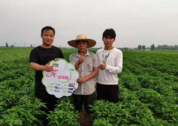 在烈日炎炎的乡间地头,同学们不畏辛苦,包干到村、指导到户,每天走访上百名农户,并到田间察看作物的长势和病虫害发生情况。通过在试验田中开展对比试验,在校-企双导师的共同指导下,有针对性地为农民提供田间管理和病虫害防治方案。定期召开产品宣讲、技术指导培训会,免费发放技术资料,并为农民选购农资提供全面、细致、贴心、周到的服务。